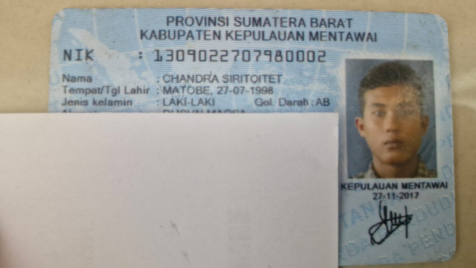 No. KTP: 1309022707980002